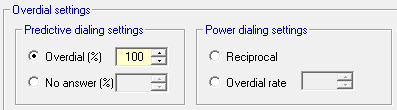 | Predictive | If you apply limits to dialing resources on a predictive campaign or when using the Cookbook, Oceanic® will disable any settings for overdialing and run the campaign at a maximum overdial rate of 100%. | |