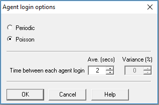 Once the number of agents for any time interval is determined, the login basis for them during that interval, is random. The allowable range of values for the time interval is 1 to 5 seconds.