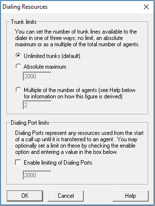 Dialing resources in Oceanic® comprise trunk lines and ports. The default state for the availability of both these resources is one of no limits. But if you expect to be short of either resource, then you can restrict their usage by selecting Dialing Resources on the Options menu (Fig. 1).