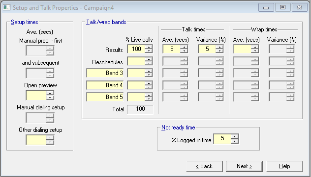 - to enter a percentage not ready time, during which agents are logged in to a campaign but unavailable for taking calls(e.g. for quick tea and comfort breaks)