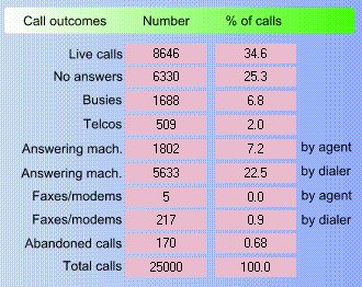 The inclusion of any abandoned calls has the effect of depressing the percentages you supplied on the Call Outcome Properties page, so that all call outcomes including abandoned calls add up to 100%.