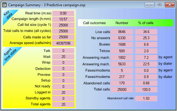 This report window is designed to give an overview of key campaign information, as it accumulates during a campaign run.