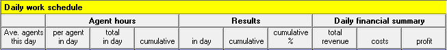 When you use the Work Scheduler to allocate the agent hour output from a campaign (Fig. 1, column 2) to a number of time periods, spread over days, weeks or months, you also have the opportunity to change the number of agents you show as logged in (Fig. 1, column 1), in any time period. See Schedule Table - Input and Output Columns - Inputs